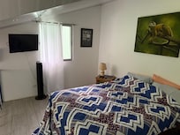 The place appealed to us because it was off the tourist path and was self contained. We chose the 1 BR loft.. Julia met us and gave a tour, seemed perfect! That was the last time we heard from her! Night #1 the power goes out about 8:00.. Texted, someone else answered! Happens all the time “just wait”. ok, we live in Mexico. no worries, but strangely the lights down stairs worked and the street lights? ummm? Texted…. No AC, No lights, No TV all upstairs. Downstairs light but no electrical outlets working. Morning #2 no water! nada!! Texted, Happen all the time out of our control..OH . Electrican coming to fix breaker. out for the day, came back. AC ON!! Water! Hot showers ( only one) no more Hot H2O, Text, code given to front apartment use that shower!!!Evening #2 AC out, lights, TV out… Next Door to sleep, bed hard as a rock!! Text… no answer. Day#3 . off for the day! back at 3pm. AC working! no hot water.. Cut our losses. Could of been a super cute stay! pura vida