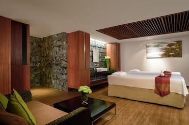 Spa 提供每日芳香療法和泰式按摩。夫妻可以共用治療室。三溫暖、熱水浴缸和瑜珈課程可增強體驗。
