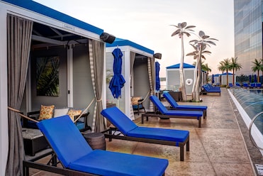 涼爽的小屋和池畔酒吧提升了這個度假村的季節性室外游泳池。游泳者無需離開清涼的海水便可享用飲品。