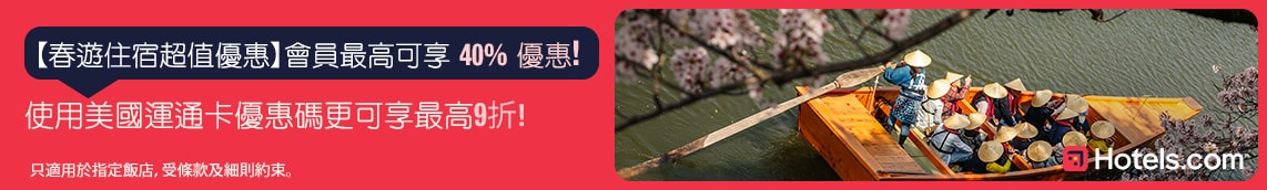 輸入優惠代碼預訂指定飯店單一消費滿NT$6,000以上 (不包括稅項/費用),立享9折!